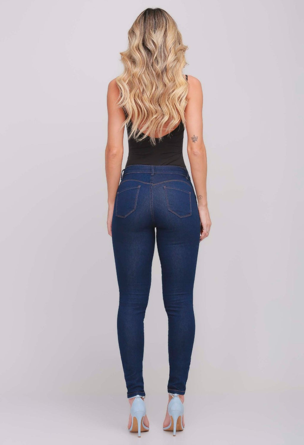 Aqui está uma descrição concisa para a Calça Jeans Skinny Feminina Escura: - Modelo veste: 38 - Altura da modelo: 1,75 - Peso da modelo: 69