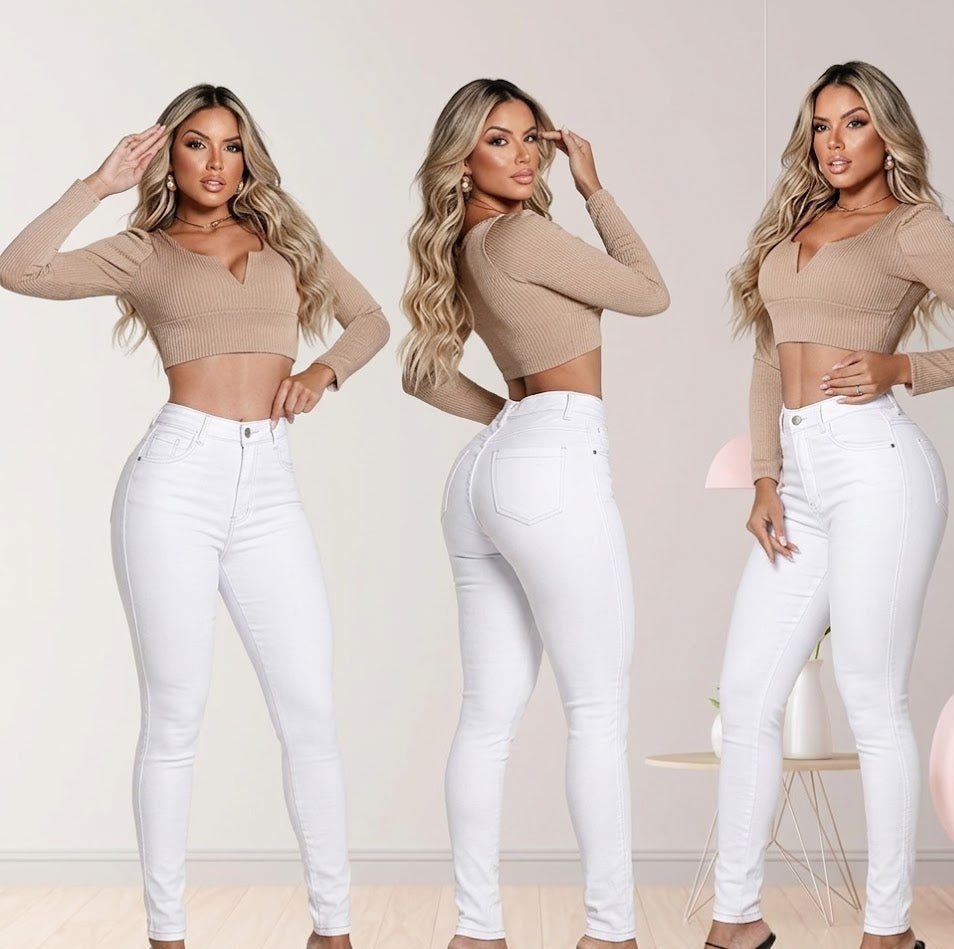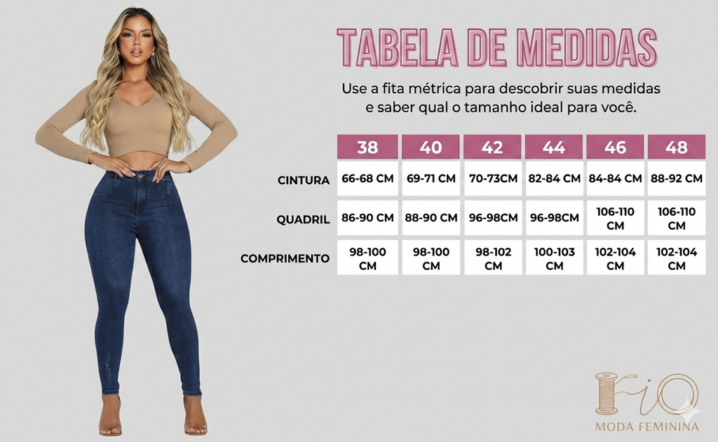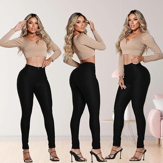 Cintura Alta Real: Modela o abdômen e proporciona segurança e elegância para usar com croppeds ou camisas.