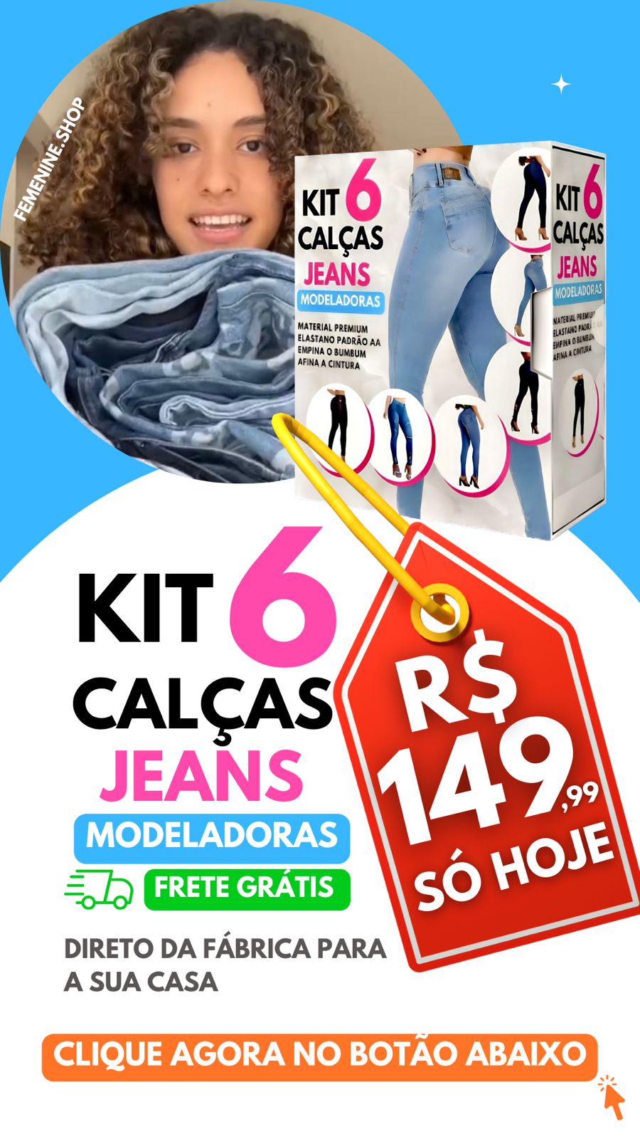 Se você busca o jeans perfeito que une modelagem impecável e liberdade de movimento, este kit foi feito para você. Nossa modelagem exclusiva com tecnologia "Empina Bumbum" foi desenhada para valorizar a silhueta feminina, garantindo um visual incrível em qualquer ocasião.